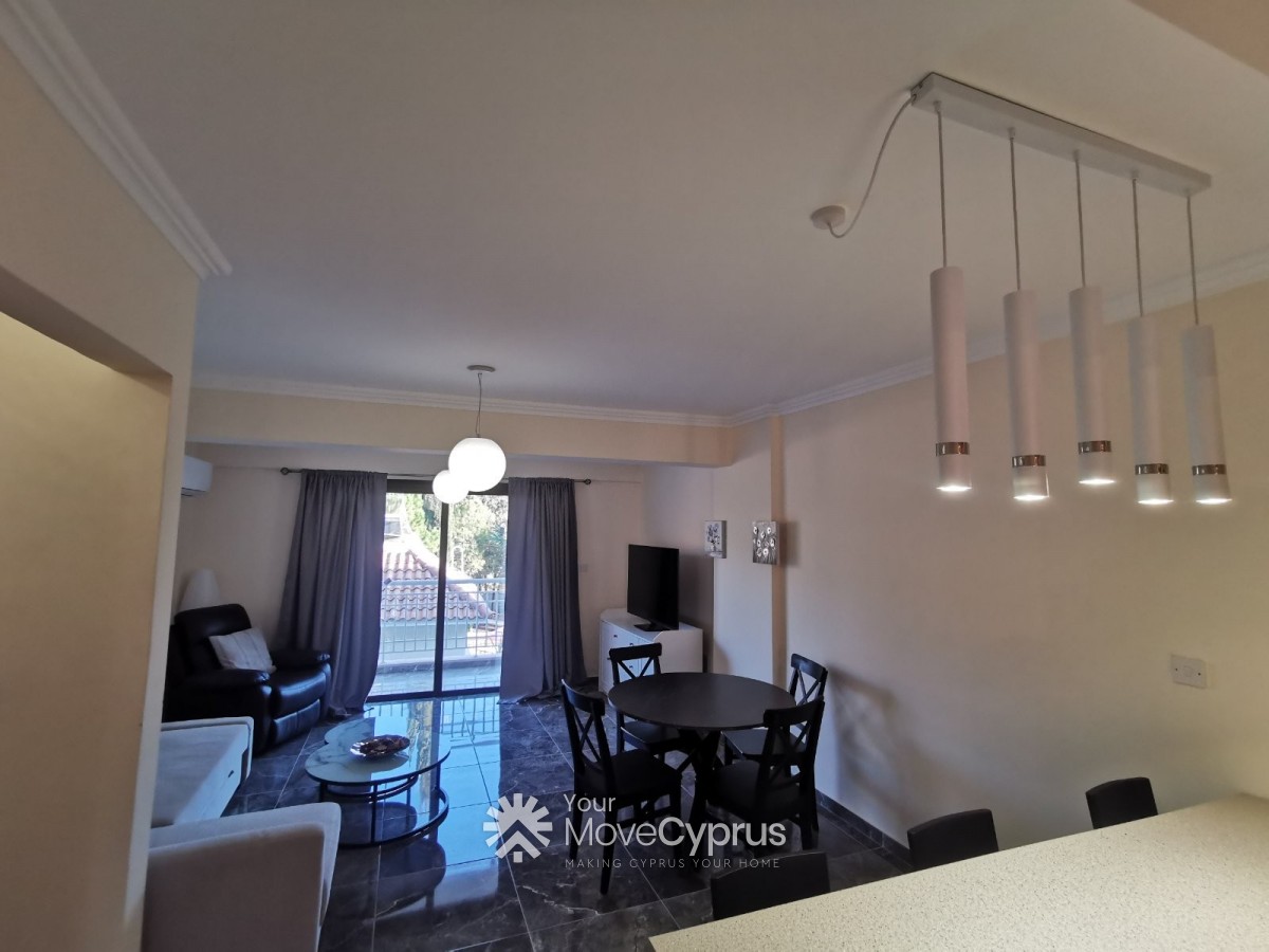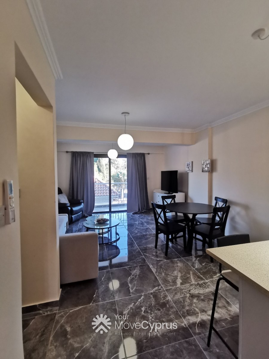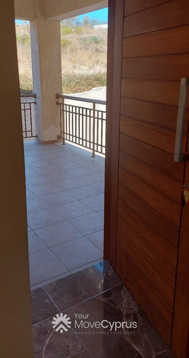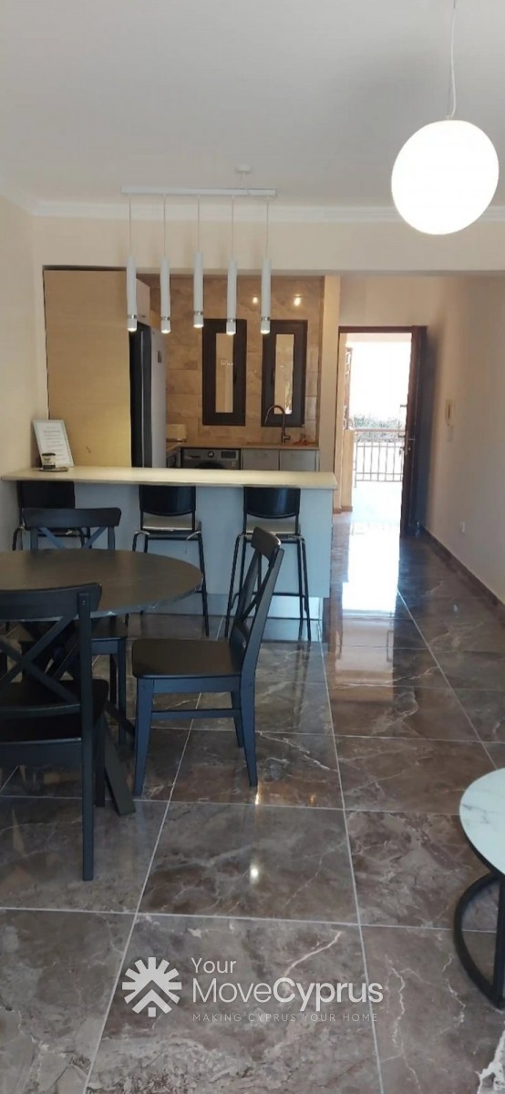 The apartment just recently newly completed, with luxury tiles and fittings. It features an open plan kitchen, with a kitchen island (that serves as a breakfast/dining table). It has spacious living room, with a balcony. It has two bedroom and one toilet and bath. It has A/C's, washing machine, fridge , cook top and oven, all brand new.. It has an open veranda overlooking the sea, and a great view of trees and nature. With a distant view of Palepafos Archaelogical site.