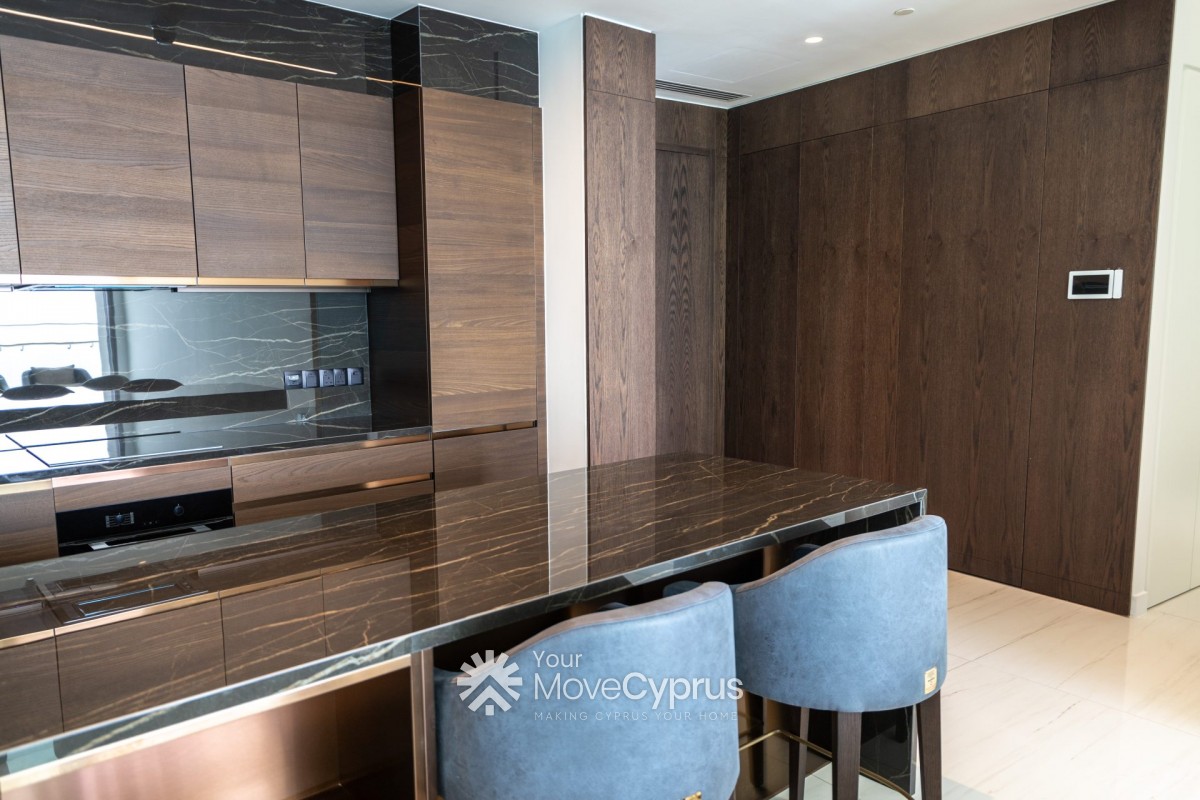 is a Seafront apartment that enjoys breathtaking views of the Mediterranean Sea at every angle. Being part of Limassol Del Mar, it expresses the island’s ‘new wave’ of architecture through its unique high-rise curvilinear design, which fully capitalises on the plot’s 170 metres long sea frontage.