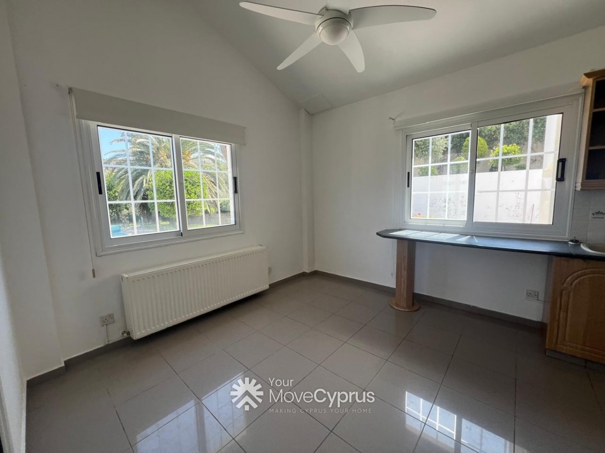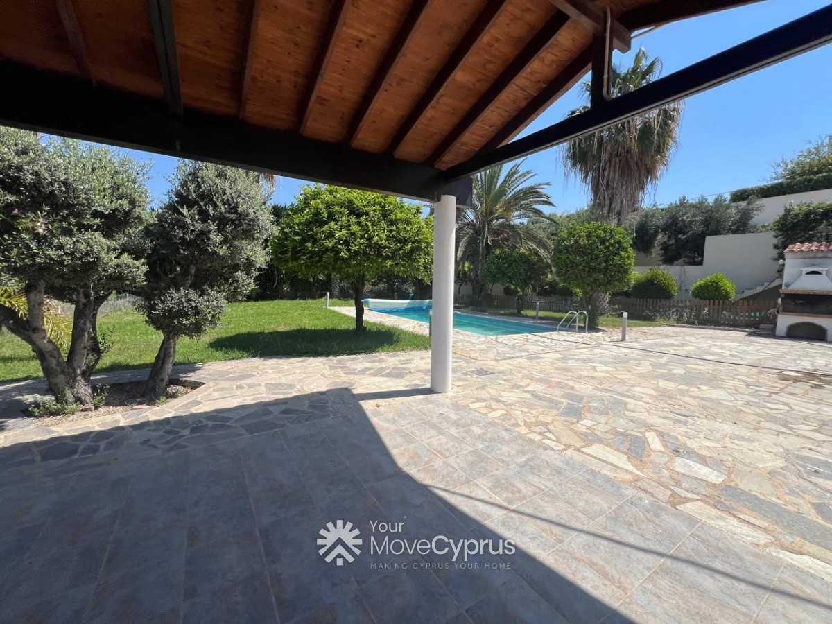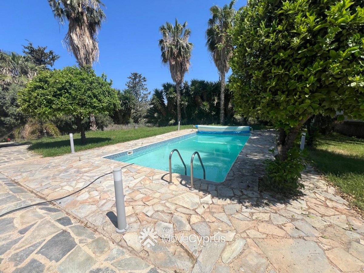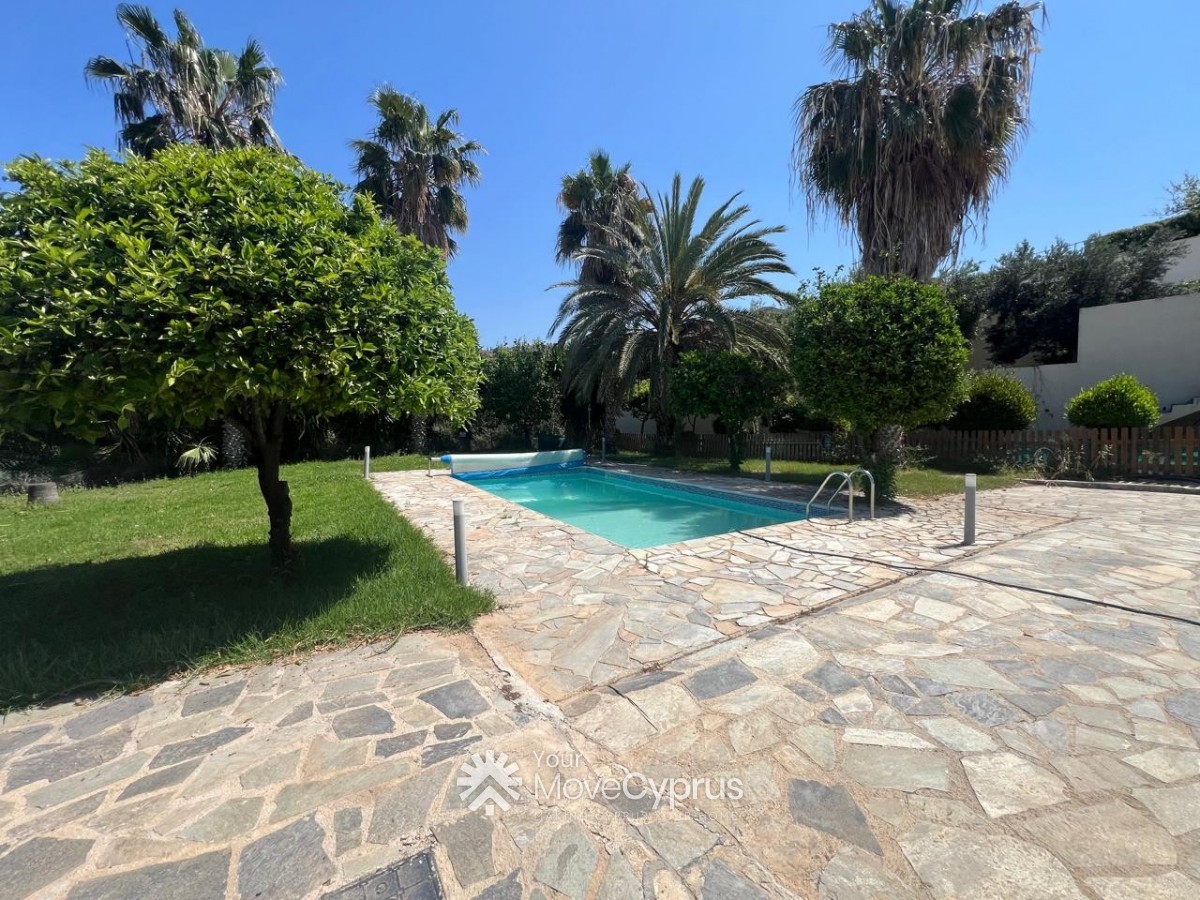 Outside, the villa boasts a large mature garden, a spacious swimming pool, and a covered garage for two cars. The property is fully gated, offering privacy and security.