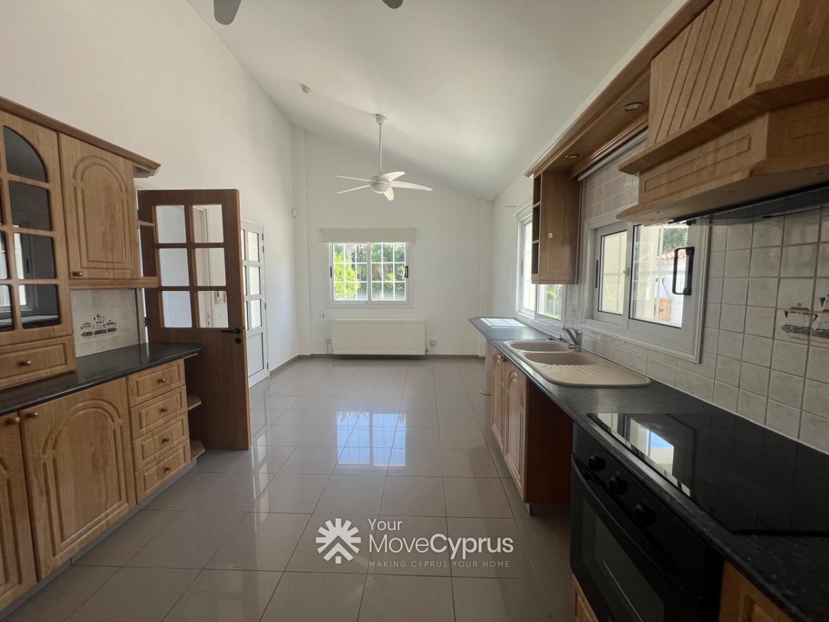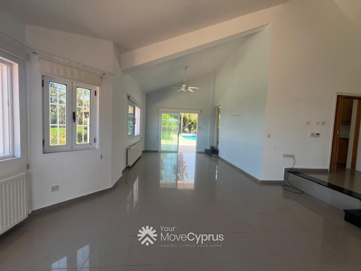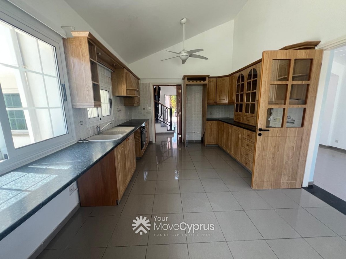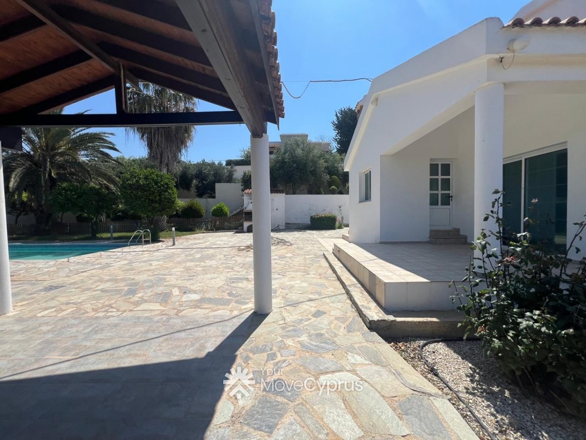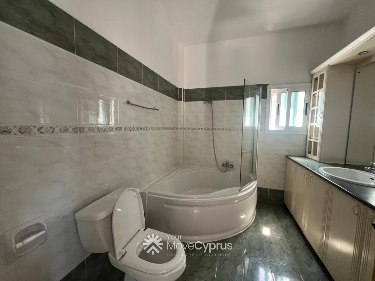 Outside, the villa boasts a large mature garden, a spacious swimming pool, and a covered garage for two cars. The property is fully gated, offering privacy and security.