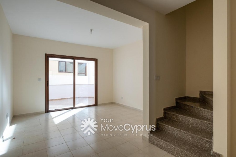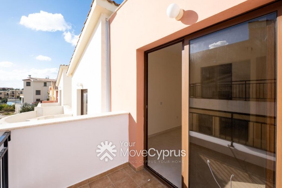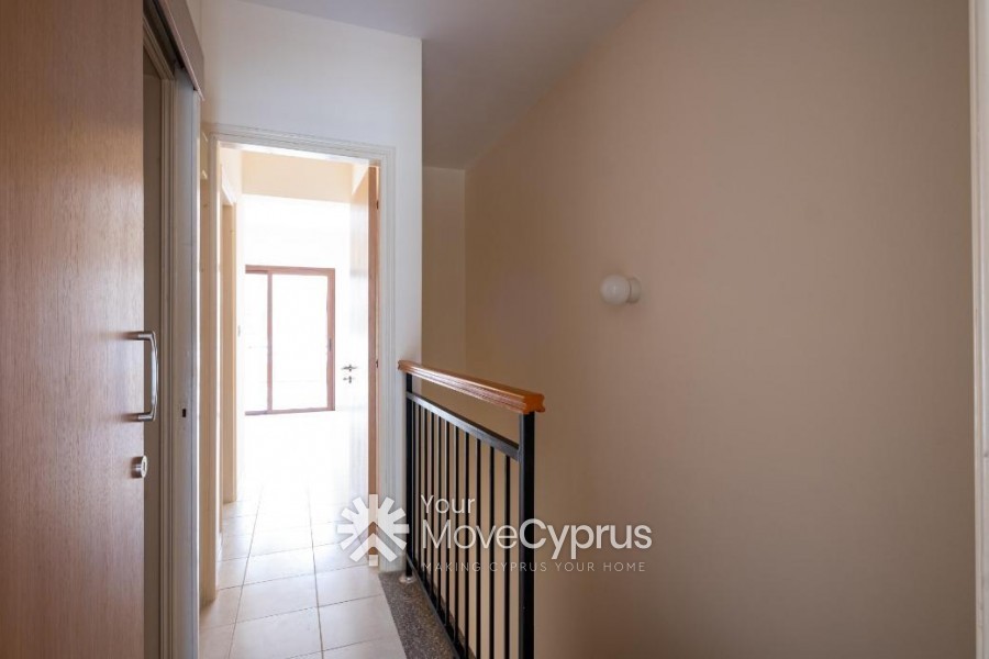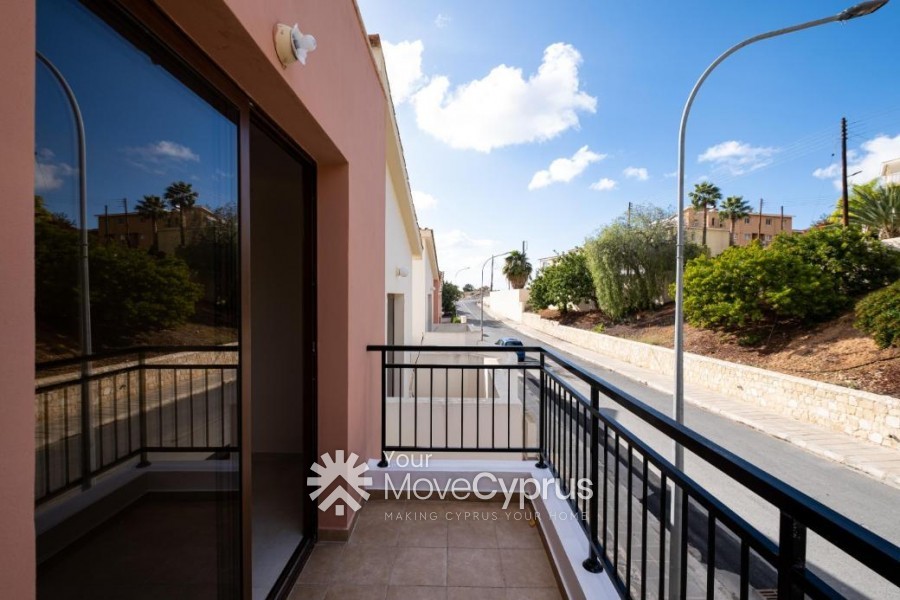 The property is a two-storey maisonette (no.6) in Pegeia. The house is a part of a residential complex of fourteen residences in total, with a communal swimming pool. It comprises an open-plan kitchen, a living area on the ground floor and two bedrooms with en-suite bathrooms on the first floor. The house has an internal area of 92.5sqm and covered verandas of 13.5sqm. The house has been very recently renovated.